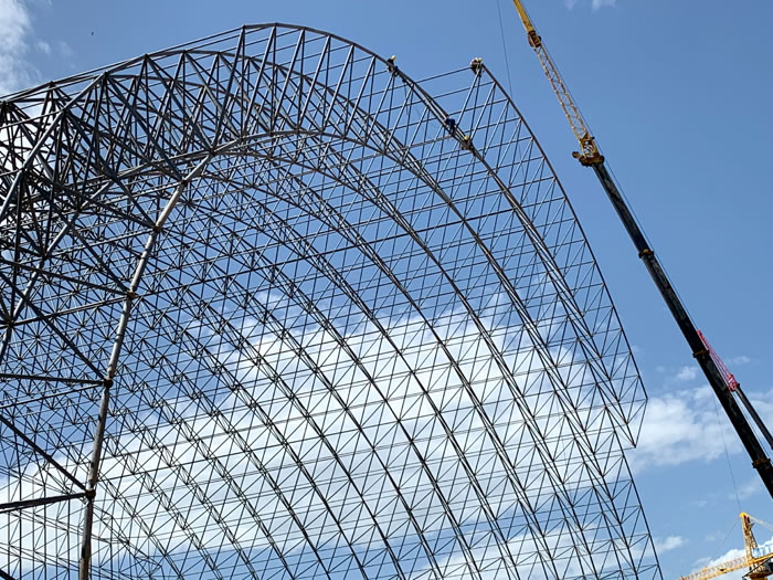 (2)网架加工前应对现场尺寸进行复测,确认无误后方可进行加工、安装;网架制作、运输、安装应遵守《空间网格结构技术规程》JGJ7-2010、《钢网架江西螺栓球节点》JG/T 10-2009、《钢网架江西螺栓球节点用高强度螺栓》 GB/T 16939-2016、《江西钢结构江西工程江西施工规范》 GB50755-2012、《江西钢结构江西工程施工质量验收标准》 GB50205-2020。