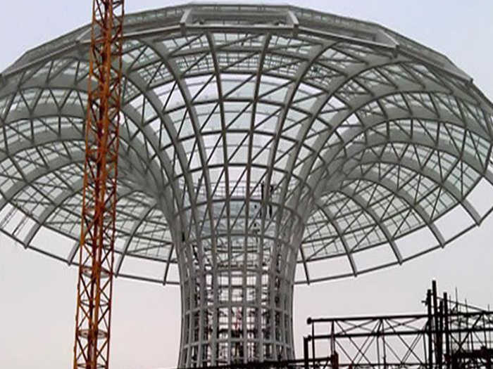 二、球形网架结构因其结构新颖,受力合理,自重轻、用钢量低等优点。如大型体育场馆球形江西螺栓球网架、公共场馆球形网架、电厂江西螺栓球网架、水泥工业球形网架、仓储物流球形网架、江西干煤棚工业球形网架、江西收费站江西加油站球形网架、展览中心、影剧院、商场、航站楼、候车厅、工厂江西车间、仓库、电视塔等球形螺栓球节点网架。国内球形网架结构主要分为:江西焊接球节点网架及螺栓球节点网架两种。螺栓球节点网架其构件工厂内加工量较大,现场安装便捷,适用于现场工期紧,江西施工条件、用电量受制约,网架形状复杂、江西杆件定位困难的异形结构。螺栓球节点球形网架系统基本由江西杆件、螺栓球、支撑支座等组成。按照节点形式可分为交叉江西桁架体系、四角锥体系、三角锥体系等。支撑方式多为固定支座支撑。对于大面积、大跨度及有特殊受力或伸缩要求的网架结构可采用橡胶支座、滑移支座、球铰支座等支撑形式,以满足结构自身的受力稳定、均衡,便于内力释放等设计要求。